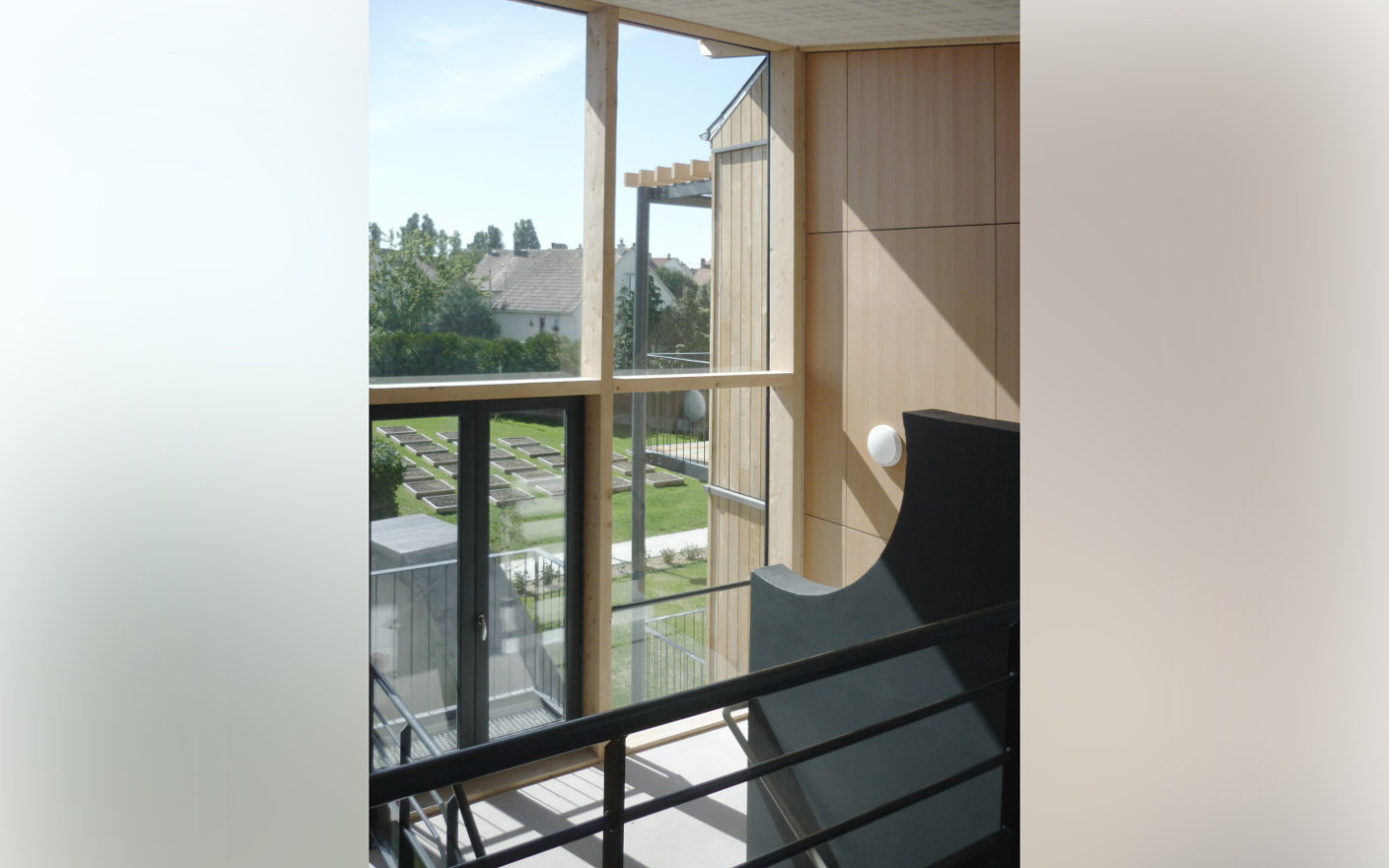 La performance thermique est notre seconde ligne directrice. L’enveloppe en mur à ossature bois entièrement préfabriquée dispose d’un U ≤ 0,16 W/(m2.K). Elle est accrochée à une superstructure béton. Les menuiseries extérieures sont en triple vitrage, Uw ≤ 0,90 W/(m2.K).