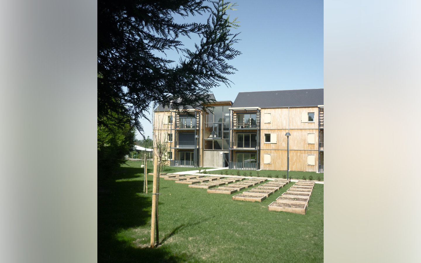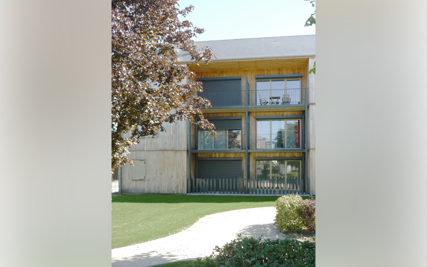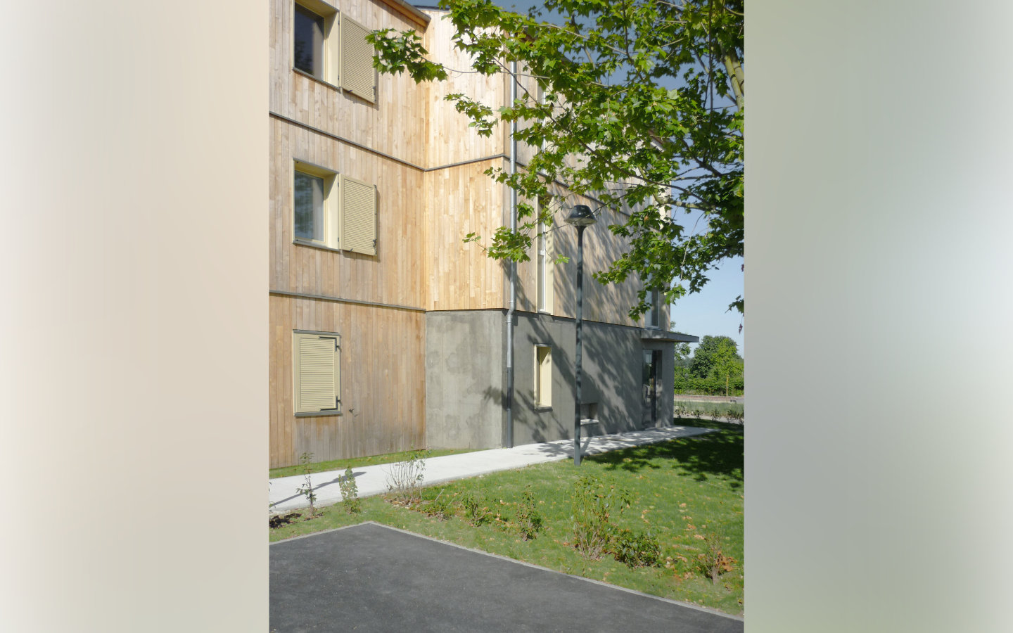 L’architecture des bâtiments est volontairement sobre, l’ambition se situant dans les qualités d’usage du parc, des halls et des logements que nous avons défendu pour qu’ils soient traversants.