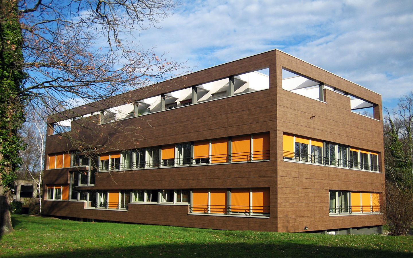 Pour cela, nous avons réalisé un travail soigné de trame et de géométrie que nous avons associé au choix d’une vêture en résine thermodurcissable et d’une toile de store formant au gré des différents degrés de fermeture un surlignage aléatoire.